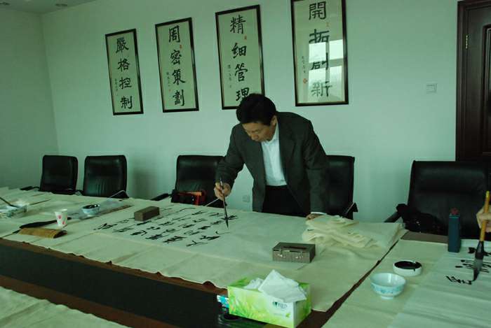 为弘扬传统文化,丰富员工业余生活,5月6日上午,呼和浩特赖瑞物业维护管理有限公司举办了首届书画艺术学习交流活动。本次活动邀请了中国书法家协会会员孟云飞博士、中国书法家协会理事张铜彦先生、中国书法家协会编辑出版委员会副主任王荣生教授、人民艺术家协会理事于瑛先生等国内知名书画大师,各位书画大师在活动现场进行了艺术创作表演,挥毫泼墨,交流技艺,为呼和浩特赖瑞物业维护管理有限公司留下了数十副墨宝,还对部分员工的书画作品进行了悉心指导。公司员工现场欣赏了书画大师的艺术创作,并聆听了有关书画艺术鉴赏知识的介绍,部分员工还在活动现场进行创作,听取书画大师的讲解示范和点评。